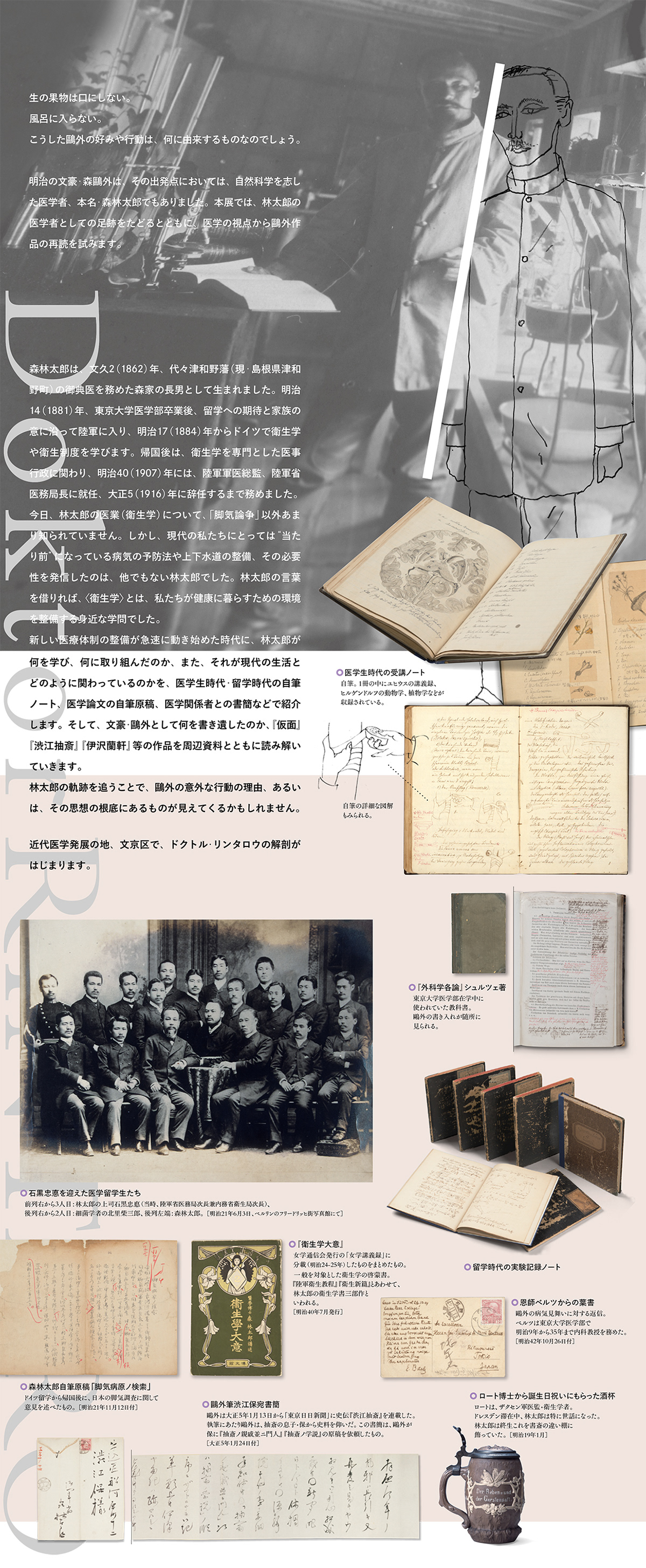 森鴎外記念館特別展「ドクトル・リンタロウ医学者としての鴎外」メインイラストレーション